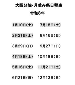 令和8年の月並祭予定は以下の通りです。
